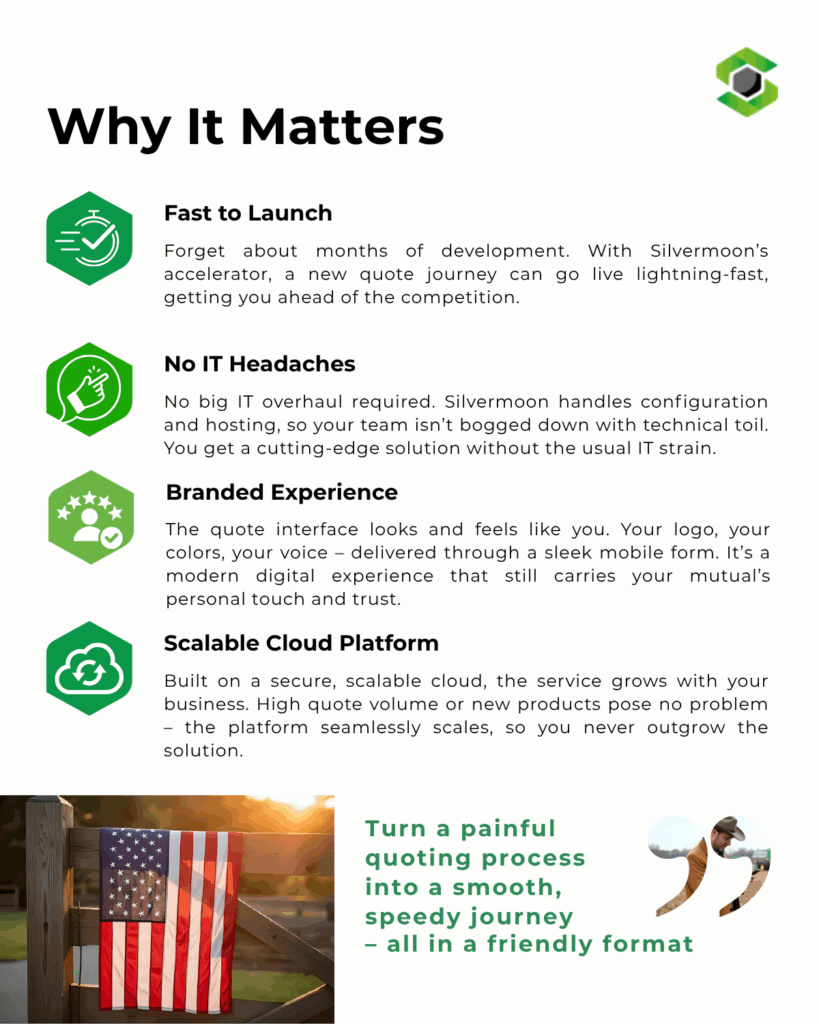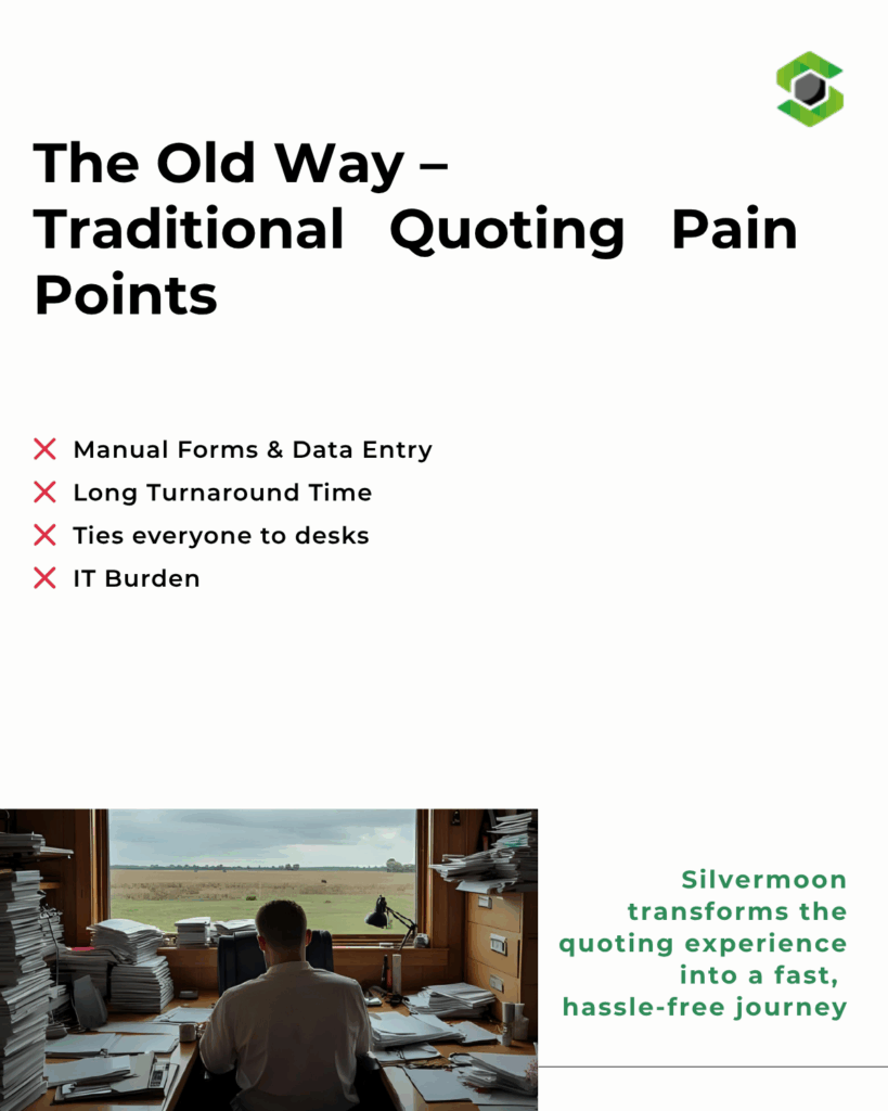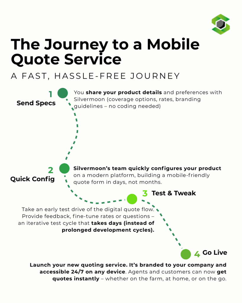 ๐ง๐ต๐ฒ ๐๐ผ๐น๐๐๐ถ๐ผ๐ป? Rapidly prototype a mobile quote app. Modern tools (like Silvermoonโs LUNOS platform) plug into your current systems, so you can test mobile quoting solution in weeks, not months โ no heavy IT project or big budget needed.